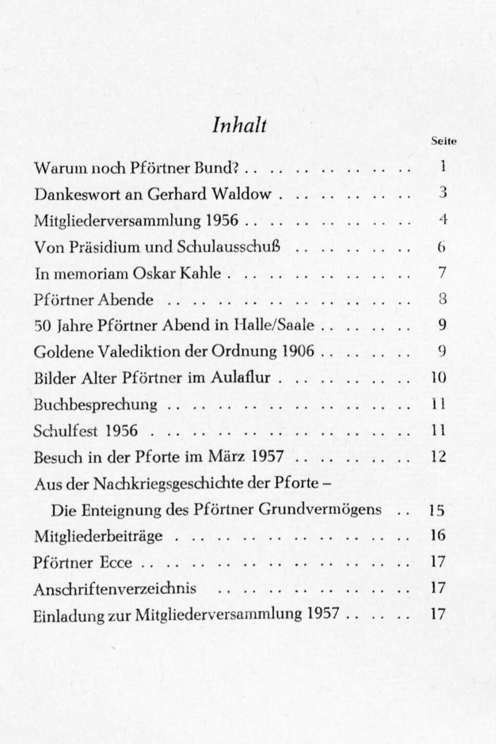 Das Archiv des Pförtner Bundes kann sich, um die Deckenlast in den Archivräumen nicht zu groß und den Platz in den Schränken nicht zu klein werden zu lassen, von überzähligen alten Ausgaben der Jahreszeitschrift „Die Pforte“ trennen. Allerdings sind nicht von allen Jahrgängen gleich viele Hefte vorrätig. Insofern lohnt sich schnelles Handeln, falls jemand an einem bestimmten Heft interessiert ist. Damit man sehen kann, welche interessanten Beiträge sich in den Heften verbergen, können hier die Inhaltsverzeichnisse aller Hefte ab 1957 eingesehen werden. Die Jahrgänge ab 2007 sind auf unserer Seite sowieso digital einsehbar, aber können ebenfalls von allen, die lieber im Heft als am Bildschirm lesen möchten, noch erbeten werden.